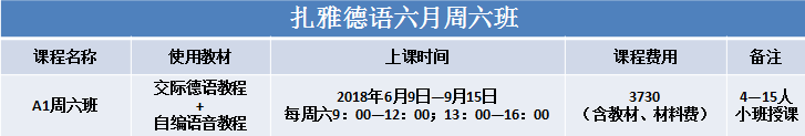 【德语课程】扎雅德语2018年暑期课表 |